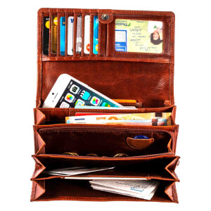 MATADOR BUDAPEST XL Leder Damen Langbörse RFID Blumen Braun